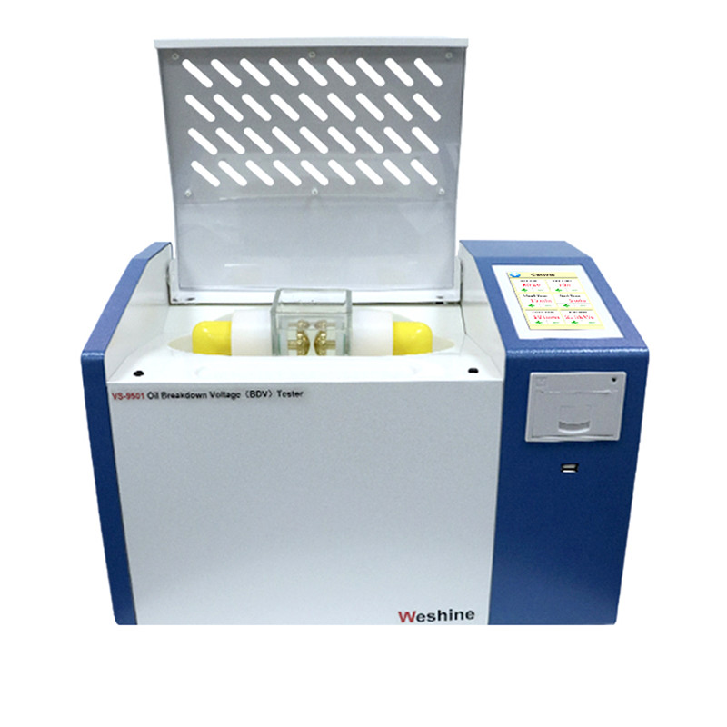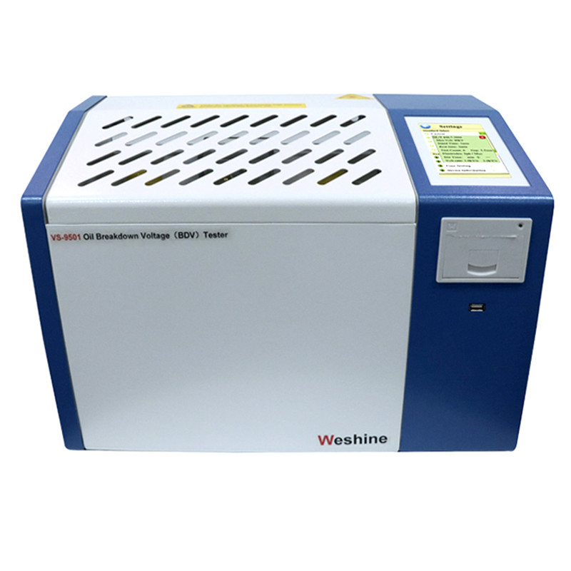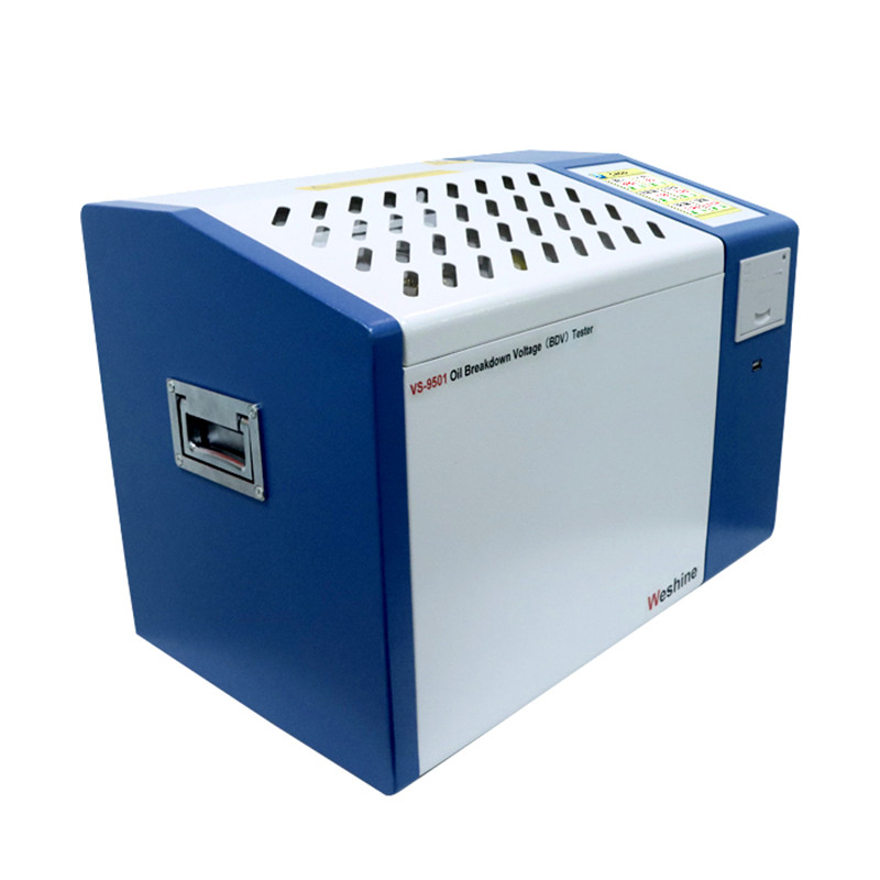 Weshine이 발명한 VS-9501 시리즈는 변압기 오일 BDV 테스트를 측정하기 위해 고급 기술로 설계된 완전 자동 변압기 오일 BDV 테스트 키트로 정확한 항복 전압을 측정할 수 있는 빠른 감지 기능을 갖추고 있습니다. 이 시리즈는 테스트 시퀀스에 대한 국내 및 국제 표준을 준수하며 사용자 친화적인 맞춤형 테스트 시퀀스도 제공합니다. 이 시리즈는 쉬운 작동을 위해 대형 컬러 터치 스크린 디스플레이와 함께 제공됩니다. 최대 100개의 테스트를 저장할 수 있는 내부 메모리와 현장 보고서 인쇄를 위한 내장 열전사 프린터가 제공됩니다. 안전을 위해 당사의 변압기 오일 시험기 시리즈에는 손상을 방지하기 위한 개방형 접지 감지 기능이 있습니다. 성형된 오일 테스트 용기는 미네랄, 에스테르 및 합성 오일을 테스트하는 데 적합하며 표준에 따라 테스트를 수행하기 위해 조정 가능한 전극 간격 설정과 함께 제공됩니다.